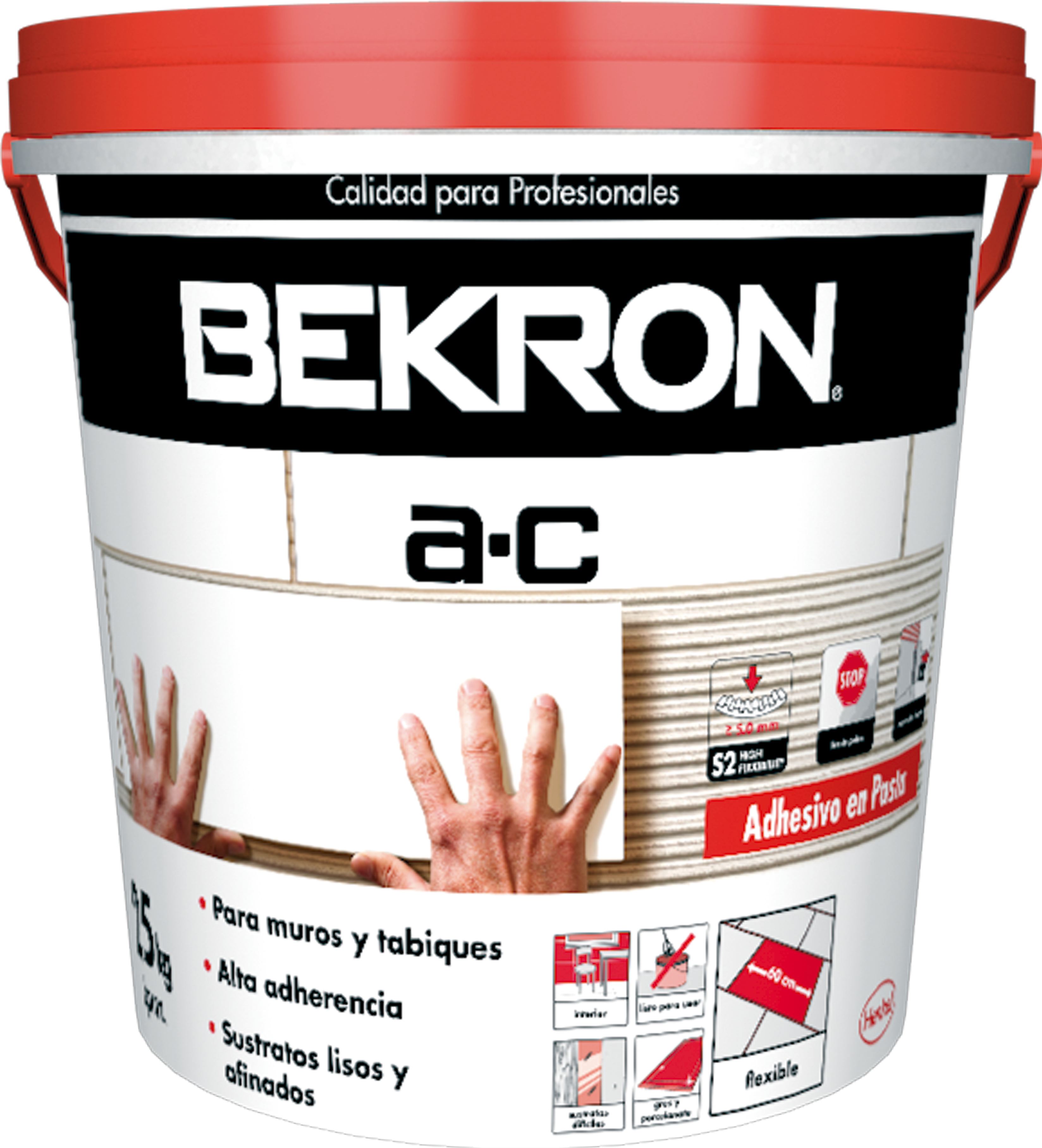 Pasta adhesiva para cerámicos, porcelanatos, gres y piedras naturales, de uso en interiores sobre tabiquería de planchas de yeso-cartón, fibrocemento, albañilería estucada, etc. También puede ser usado sobre muros rígidos (hormigón).