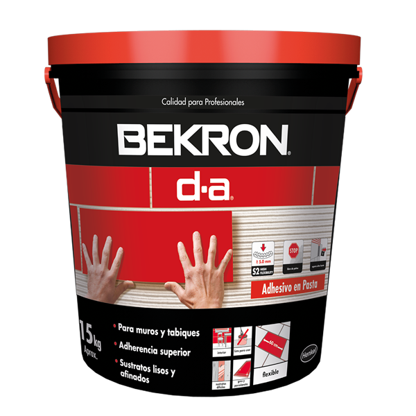 Adhesivo para pisos y muros de doble acción; más adhesión y más flexibilidad. Tiene un coeficiente de flexibilidad, cohesión y adherencia de contacto muy superior al de los adhesivos corrientes. Áreas de humedad, piscinas, pisos y muros.