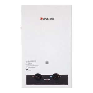 Calefont Splendid de la línea Master con doble control de temperatura, agua y gas. Múltiples sistemas de seguridad. Máximo ahorro de gas. Encendido automático. Sin llama piloto. Gas licuado.