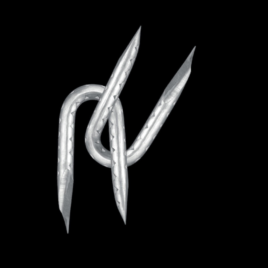 Alambre en forma de U usualmente utilizado para fijar alambres o mallas en cercos perimetrales que utilizan alambre o malla de acero. Corrugada Galvanizada tiene triple agarre a madera